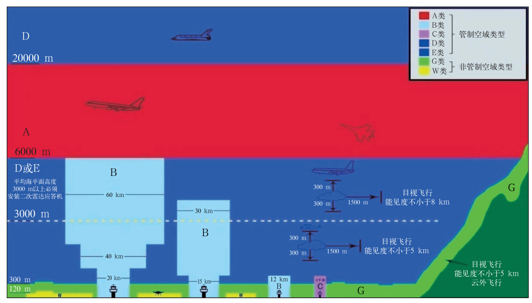 图 1 国家空域基础分类示意(中国民用航空局,2023) Fig. 1 Schematic diagram of basic classification of national airspace (cited from Civil Aviation Administration of China, 2023) |