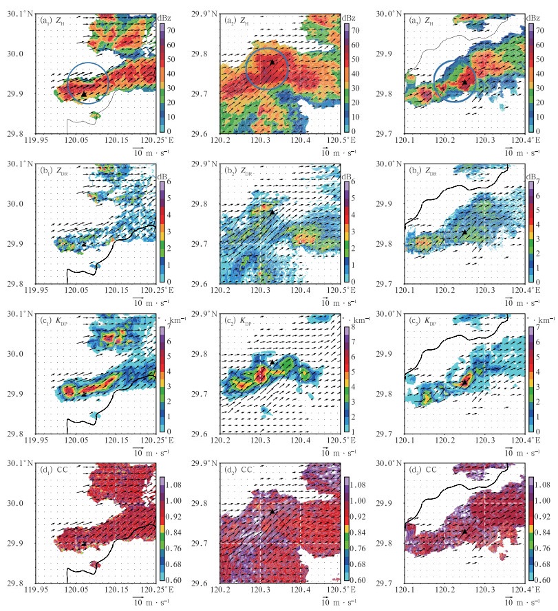 本文基于X波段相控阵雷达基本产品,研究了浙江夏季极端降水分钟级双偏振参量统计特征,并借助反演风场分析典型极端降水过程的风暴精细结构。主要结论如下: