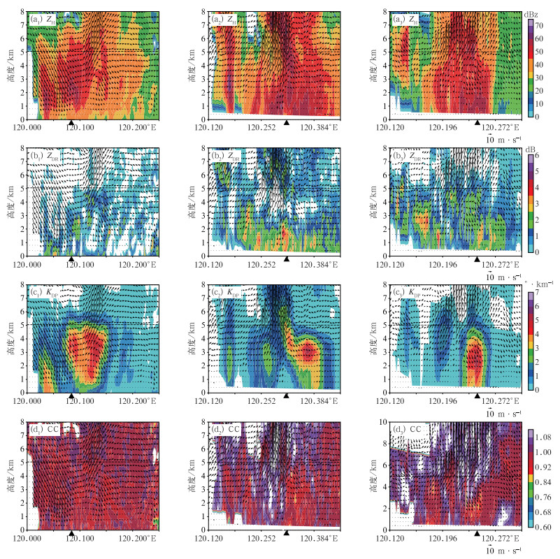 双偏振雷达可以获取差分反射率因子(ZDR)、差分传播相移率(KDP)、相关系数(CC)等偏振参量。这些参数演变与降水粒子的形状、相态、空间取向等关系密切(刘黎平等,1996a;1996b;楚荣忠等,1997;张鸿发等,2001;Potvin et al,2009;寇蕾蕾等,2018;冯亮等,2018;王洪等,2018;刁秀广等,2020;刁秀广和郭飞燕,2021;申高航等,2021)。但常规S波段和C波段双偏振雷达存在扫描周期过长,垂直方向分辨率不高等问题,使其难以获取对流风暴内部的精细结构和云微物理特征,对中小尺度灾害性天气的探测性不足(刘黎平等,2016)。X波段相控阵雷达具有扫描速度快、分辨率高和覆盖率高的特点,能够精确地探测空间三维风场、强度场、双偏振量等信息,从而获取对流云团完整的热力和动力特征(刘黎平等,2016;吴翀等,2014;马舒庆等,2019)。全球主要发达国家较早开展了相控阵天气雷达的观测与应用研究(Zrnic et al,2007;Bluestein et al,2010;Heinselman et al,2008), 近年来国内不少地区已开始建设X波段相控阵雷达(吴翀等,2014;于明慧等,2019;张哲等,2023;张蔚然等,2023)。质量控制后的X波段相控阵雷达可用于分析强风暴强度和三维风场,能够探测到对流风暴垂直结构,提升中小尺度天气系统精细监测预警能力(Zhang et al,2021;张曦等,2022;苏永彦和刘黎平,2022)。