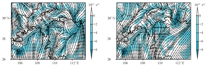 (3) 湘西地区复杂地形地貌为暴雨预报增加了不确定性。此次特大暴雨发生在云贵高原向洞庭湖平原过渡的区域,区域内地形地貌极为复杂,而地形对MCS的触发、组织以及移动和传播具有重要影响。Houze(2014)研究表明,如果复杂地形背景下大气是浮力不稳定的,那么大气对地形响应会激发出积雨云,这些积雨云将进一步发展为MCS。其可能的机制包括中小尺度地形对夜间增强的西南气流的阻挡抬升和山地河谷间辐射降温差异导致的山谷风和高温度梯度等(徐珺等,2018;Smith,2019)。当天湘西地区是满足浮力不稳定的,过程期间该区域也出现了多个γ-MCS的新生,从图 1b也可以看出,强降雨主要发生在武陵山脉南侧和沅江支流酉水河谷地带,地形为强对流的发展和特大暴雨的发生提供了有利条件,然而目前的数值模式很难精细描述地形影响及其所产生的物理过程(Ebert and McBride, 2000),预报员的主观经验也存在偏差,从而增加了预报难度。