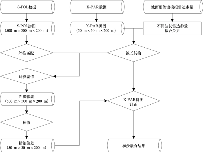 图 3 S-POL与X-PAR雷达网拼图融合方法流程图 Fig. 3 Radar mosaic fusion method of multi-band radar network |