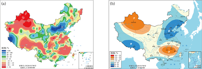 图 1 2025年(a)夏季中国降水量距平百分率分布及(b)3月底发布的预测结果 Fig. 1 (a) Distribution of precipitation anomaly percentages in China in summer and (b) corresponding prediction issued at the end of March in 2025 |