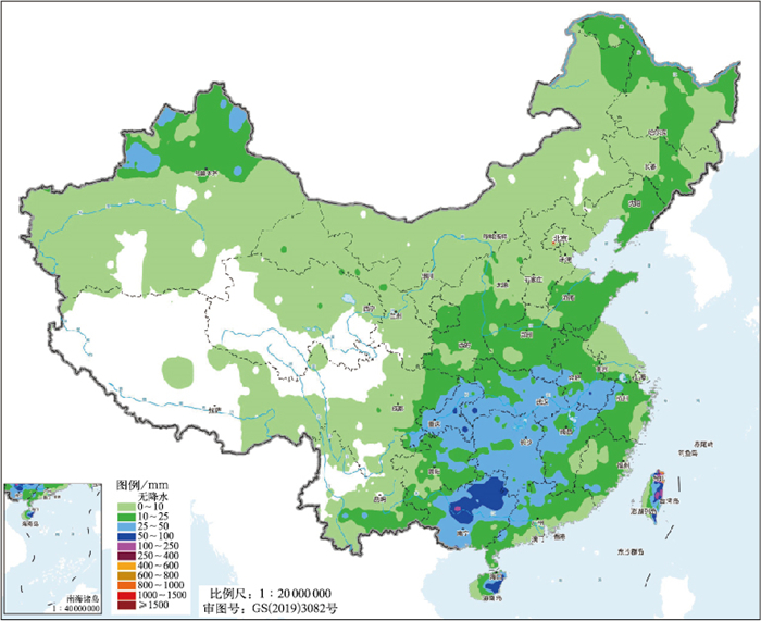 图 1 2025年12月全国降水量分布 Fig. 1 Distribution of precipitation over China in December 2025 |