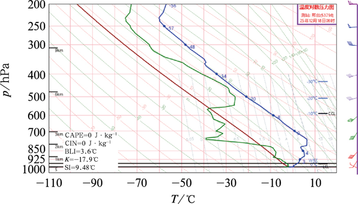 图 13 2025年12月18日08时邢台站T-lnp图 Fig. 13 T-lnp diagram at Xingtai Station at 08:00 BT 18 December 2025 |